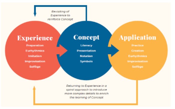 In the Concept phase, the teacher helps students to relate the activities in the Experience phase to formal learning. It allows students to make sense of the prior activities and to understand the musical concept.