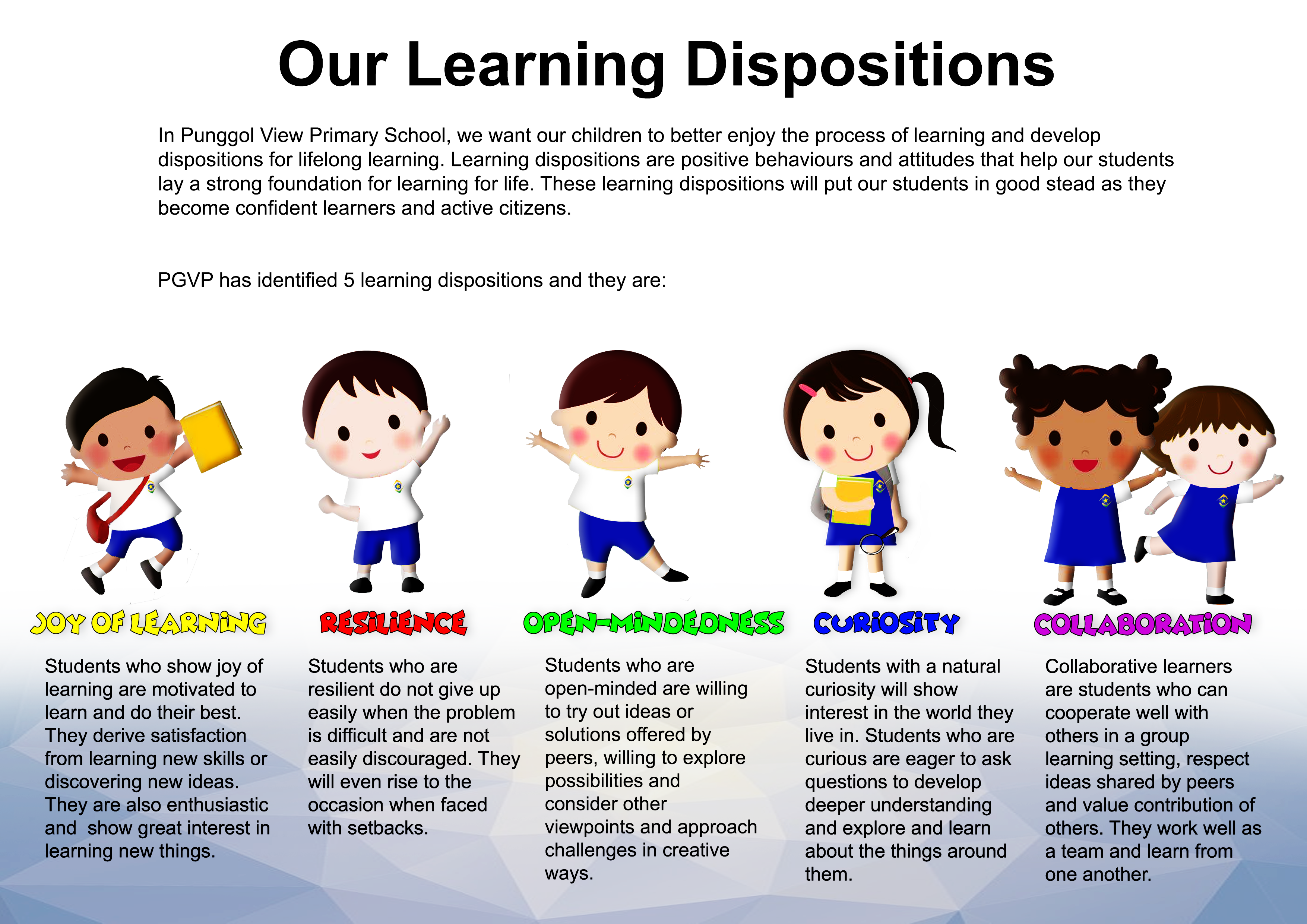 In Punggol View Primary School, we remain focused on developing the whole child, aiming to mold our students into Confident learners and Active citizens with the appropriate traits and Learning Dispositions. To nurture our students into confident learners and active citizens, we believe that our children must be taught not only what to think but “how” to think. We want them to be developed into Effective and Empathetic Communicators and have the capacity to think well, think clearly and think creatively. This will ensure they are well-equipped to navigate the complexities of the modern world.
